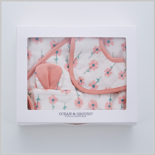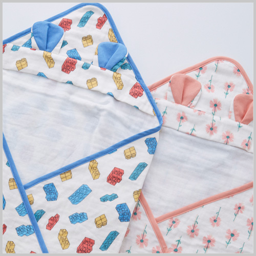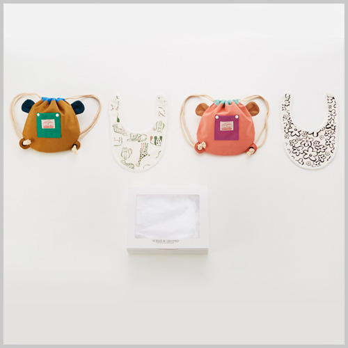耳付きのおくるみとスタイが