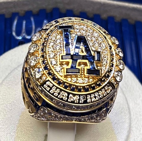 リングトップ表面のLAロゴは46個のダイヤモンドと