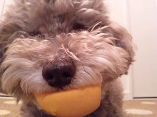 大好きなたまごちゃんをくわえてるマック。