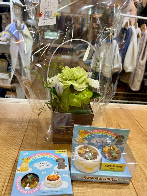 まめちゃんにお花いただきました。