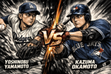 山本由伸投手と岡本和真選手の