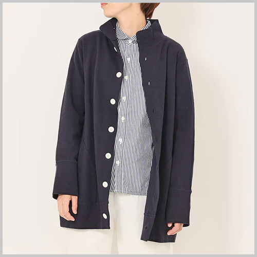 ストレッチコットン素材のカーディガン。