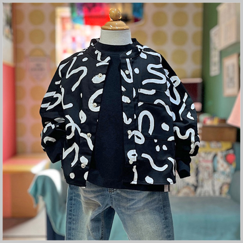 Kids Jr Men’s 曲線柄バンドカラーシャツ