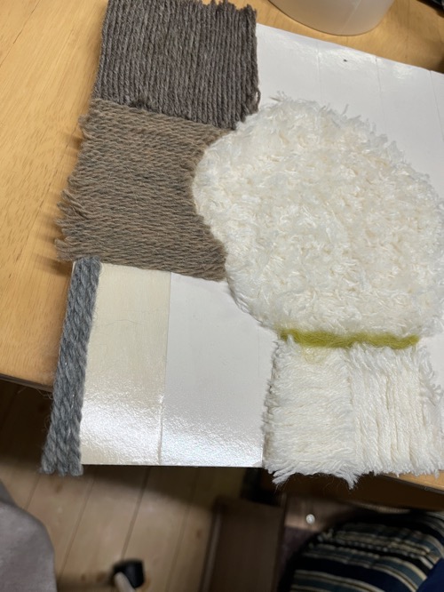 そこへ色々なカラーの毛糸を貼り付けていく